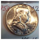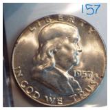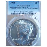1 1806 British Half Penny VF+ 2 1807 British Half Penny VF 3 1860 British Farthing XF 4 1900 Newfoundland 50 Cent Silver VF 5 1901a Prussia 2 Mark Silver XF 6 1909 Canada 50 Cent Silver VF 7 1925 Canada 5 Cent KEY XF 8 1939 Canada 50 Cent Silver MS62 9 1944s Australia Six Pence Silver MS65 10 1909 to 58s Lincoln Set Complete -svdb 1x 11 76 Mercury Dimes 1929s up XF/BU 12 150 Jeffersons with 61 Full Steps BU/PR 13 85 Roosevelt Dimes Most Silver BU/PR 14 30 W L Halves with 38d VF to Au 15 1760 Hibernia Voce Populi Colonial VG 16 1773 Virginia Half Penny No P XF/AU 17 1788 Connecticut Bust Right VF 18 1804 Bust Half Cent Spike Chin XF 19 1802 Bust Large Cent Stems F 20 1802 Bust Large Cent Stemless XF 21 1803 “ Sm. Date Large Fraction XF/AU 22 1810/9 Large Cent KEY VF/XF 23 1812 Large Cent Sm Date VF+ 24 1818 Large Cent XF 25 1827 Large Cent AU 26 1828 Large Narrow Date F 27 1832 Large Cent VG 28 1846 Large Cent Sm Date VF 29 1839 Large Cent VF 30 1854 Large Cent XF 31 1857 Flying Eagle MS65 32 1858 “ Lg Letter from 1944 Auctio n XF/AU 33 1863 Civil War Token never Had Red Gem65 34 1863 “ Never Had one of these Red MS65 35 1859 Indian Cent 1st Year Red MS65 36 1858 Flying Eagle F 37 1865 Indian Cent AU 38 1866 Indian Cent VG 39 1867 Indian Cent VF+ 40 1868 Indian Cent VG 41 1869 Indian Cent G 42 1869/9 Indian Rare Overdate XF 43 1868 Indian Cent Vf 44 1873 Indian Closed 3 AU 45 1874 Indian MS63 46 1875 Indian Cent Red MS64 47 1875 Indian Cent F 48 1876 Indian Cent AU+ 49 1878 Indian cent VG 50 1874 Indian Cent VG 51 1882 85 Indian Cents 2x XF 52 1888 89 Indian Cents 2x XF 53 1891 99 Indian Cents 2x XF 54 1895 Indian Cent Red MS63 55 1903 06 Indian Cents 2x MS60 56 1907 Indian Cent Red MS65 57 1909svdb Lincoln KEY VF 58 1911s Lincoln Cent XF+ 59 1913s Lincoln Cent R/B MS65 60 1921 Lincoln Cent Red MS64 61 1924d Lincoln Cent XF 62 1931s Lincoln Cent KEY Red MS64 63 1911s Lincoln Cent VF 64 1924d Lincoln Cent F 65 1863 Indian Cent VF 66 17 1937d 58d Cents Red 63 to 65 67 1909svd Lincoln Cent KEY AU 68 1931s Lincoln KEY Red MS63 69 1876 Three Cent Nickel AU 70 1866 Shield Nickel Rays AU 71 1876 Shield Nickel VF 72 1883 Liberty Nickel XF 73 1888 Liberty Nickel MS63 P/L 74 1890 Liberty Nickel XF 75 1895 Liberty Nickel XF 76 1907 Liberty Nickel MS63 77 1914s Buffalo Nickel AU++ 78 1917d Buffalo XF 79 1919d Buffalo XF 80 1926s Buffalo XF 81 1971s Jefferson PR70 DCAM 82 1936 Lincoln Cent Broke R VF 83 1830 Bust Half Dime XF 84 1827 Bust Dime F 85 1892 97 Barber Dime 2x VF 86 1894 Barber AU 87 1998o Barber VF 88 1898s Barber MS60 89 1899 02 06s Barbers 3x VF+ 90 1906 Barber MS63 91 1908s Barber AU 92 1913 Barber MS63 93 1937 Mercury Dime MS65 FSB 94 1939d Mercury Dime MS65 FSB 95 1942s Mercury Dime MS66 FSB 96 35 Roosevelt Silver 35x Gem65 to 67 97 1831 Bust Quarter GEM MS63++ 98 1853 Seated Arrow & Rays VF+ 99 1854 Seated Arrows VF 100 1857 Seated Quarter XF+ 101 1861 Seated Quarter MS63 102 1893 Barber Quarter GEM64 103 1895s Barber XF 104 1900o Barber AU 105 1905s Barber AU 106 1908 Barber MS60 107 1914s Barber KEY VF 108 1918s S L Quarter XF 109 1923s S L Quarter KEY AU+ 110 1927s S L Quarter VF 111 1928s S L Quarter XF 112 1929 S L Quarter MS63 113 1929d S L Quarter GEM65 114 1918s S L Quarter AU 115 1932s Washington Quarter KEY F 116 1932 Washington GEM65 117 1932d Washington KEY AU58 118 1932s Washington KEY GEM65 119 1936 Washington MS64 120 1939s Washington MS64 121 1940d Washington MS65 122 1951 Washington PR68 123 27 50d to 61d + 59d DD 27x 65 to 67 124 1840 Seated Half Sm Ltr MS63 125 1846o Seated Half Me Date MS60++ 126 1894s Barber Half XF 127 1901 Barber AU+ 128 1902 Barber AU/BU 129 1915 Barber KEY XF 130 1921d W L Half KEY VF+ 131 1929s W L Half AU 132 1937s W L Half MS64 133 1939s W L Half MS63 134 1941s W L Half MS64 135 1950d D/D Franklin MS65 FBL 136 1951 Franklin MS65 FBL 137 1951d “ DD D & Rev MS65 FBL 138 1951s “ DD Rev. MS65 139 1952 “ Double Date MS65 140 1952d Franklin MS65 FBL 141 1952s Franklin MS65 142 1953 Franklin MS65 143 1953d Franklin MS65 FBL 144 1953s Franklin MS65 145 1954 “ DD O & Rev MS65 146 1954sd Franklin 2x MS65 147 1955 57 Franklins 2x MS65 148 1956 Franklin MS65 FBL 149 1957d “ DD Rev MS65 150 1958 “ DD Rev MS65 151 1958d Franklin D Date MS65 FBL 152 1959 59d Franklin 2x MS65 153 1960 60d Franklin 2x MS65 154 1961 61d Franklins 2x MS65 155 1870d Kennedy MS65 156 1799 Drape Bust Dollar AU 157 1802/1 Bust Dollar PCI XF40 158 4 .999 Engelhard Bars 4x 159 1984 .999 “ Round 1x 160 2021cc Morgan PCGS MS70 161 2021 Peace PCGS MS70 162 2023s Peace CAC Pr70 Rev 163 1878 Morgan 7/8 MS63 DMPL 164 1878s Morgan Gem65 165 1878cc Morgan Super MS65 DMPL 166 1879s Morgan 3rd Rev MS65 167 1879o Morgan MS64 168 1879s Morgan MS66 DMPL 169 1880o Morgan MS63 170 1883o Morgan AU 171 1883s Morgan MS63 172 1885 Morgan MS63 173 1885s Morgan MS64 P/L 174 1885o Morgan MS65 175 1885o Morgan GEM65 176 1886o Morgan AU58 177 1886s Morgan MS63 178 1888s Morgan MS63 DMPL 179 1889s Morgan MS65 Frost 180 1889cc Morgan KEY VF 181 1890 Morgan MS60 182 1891s Morgan MS64 183 1892cc Morgan KEY MS63 DMPL 184 1896 Morgan MS60 185 1896s Morgan Key XF 186 1896 Morgan MS65 187 1892s Morgan KEY AU 188 1898 Morgan MS60 189 1898s Morgan MS64 190 1898o Morgan MS65 P/L 191 1899o Morgan MS66 192 1900 Morgan MS65 193 1901 Morgan AU 194 1900o Morgan MS64+ 195 1921s Morgan XF 196 1879s Morgan MS65 P/L 197 1888s Morgan MS65 198 1898s Morgan MS63 199 1885s Morgan MS63 200 1921 Peace Dollar MS65 201 1922 Peace MS60 202 1925s Peace MS63 203 1926d Peace MS65 204 1926s Peace MS63 205 1927d Peace MS63 206 1927s Peace MS62 207 1935 Peace NICE MS65 208 19 Peace Dollars 19x 209 1865 Virginia $1 AU 210 1863 3 Cent Washington XF+ 211 1863 5 Cent Washington UNC 212 1875 10 Cent Short Key CR/UNC 213 1899 $1 Black Eagle VF 214 1899 $1 Black Eagle Star Note XF 215 1914 $1 New York VF 216 1914 $5 St Louis AU 217 1899 $5 Indian Chief VF 218 1917 $2 Legal Tender VF 219 1914 $20 Cleveland AU+ 220 1934 $20 Blu