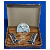 A wonderful auction full of goodies! Check it out! Auction begins to end on August 21 at 7pm and Pick up is in Rowley, MA on Sunday, August 24 from 9-2pm Antique, Mid-Century, Industrial, and Farmhouse style. Sterling Silver Candelabras and Silverware, Brass Antiques, Lots of lovely Lamps, including Pole Lamps - one from Restoration Hardware, Coca-Cola Collectible Wood Boxes and Bottles, Vintage Posters, Vintage Photos, Swords, some Asian / Asian inspired Collectibles, Beautiful Pointer Dog Weathervane... Mid-century items - cookware, bakeware, furniture, art, flatware, lamps... Hollywood Regency Solid Brass Coffee Table, Wrought Iron Patio Set, Small collectibles, Vintage Decor, Cast Iron Victorian Garden Bench, Matchbox car collections, Life-size Monkey Sculpture. Original Vintage Art - by local artists - some Picasso Reproductions, 1860s Japanese Wood Block Print, Antique nineteenth century Portrait Paintings and more. Kitchen-Aide Mixer, LL Bean Childs Wood Sled, 1900s Antique Opera Glasses, Delta Airlines Advertising Beverage Cart, Political and 1980s Pins, Model Police Cars, Cutco, Barbies, Disney, Trains . . . Mr. Boston's Pinch Bottle - something you don't see every day. Large lot of matches and ashtrays - also an antique fire extinguisher! Ethan Allen Campaign Style Wardrobes, Queen Anne Style Furniture, Var Stools, Antique University Conference Desk Chair, Asian Wood chest Buffet, Kindel Furniture, Black Iron Scrolled Coffee Table, 1970s Peacock Bohemian Wicker Chairs, and more. Hales Audio Two Signature System Two Loudspeakers, Vintage Yamaha Electric Guitar, Yamaha DX7 Electric Keyboard. Some tools, Whirlpool Electric Dryer, Electrolux Washing Machine, TESLA Bike Rack, household Items and much more! |