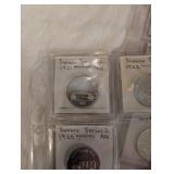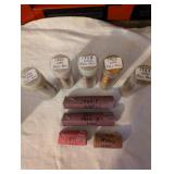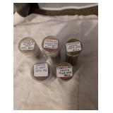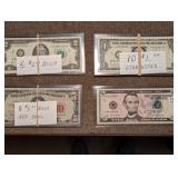 Coins: Uncirculated pennies, Jefferson nickels, Canadian, Japan, Antique car tokens, $5 Red Seal bills, $1 & $5 Star Notes, $2 bills.