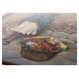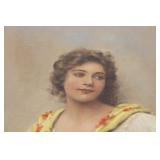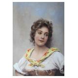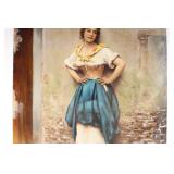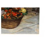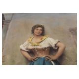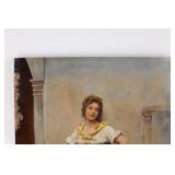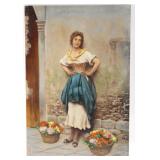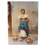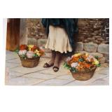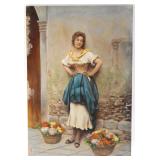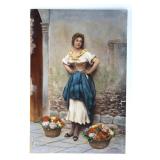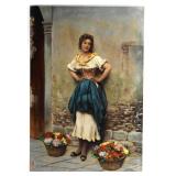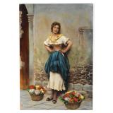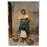 Item Removal: By Appointment - Within 5 Business Days Eugene von Blass Oil on Panel/Paper Painting "Young Woman with Baskets of Flowers" 12" x 8 1/16", signed lower right and dated 1894. A lovely and skillfully executed work in overall fine condition with minor loss along the side margins and lifting of the paper at the lower left corner. Together with a later ornate gilt frame measuring 17 1/4" x 13 1/4", some damage and loss. From a Connecticut estate. Shipping available. |