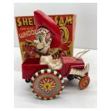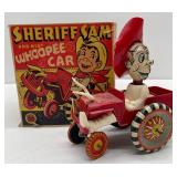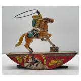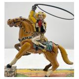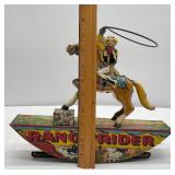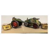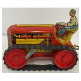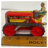 TIN LITHO TRACTORS, RIDING COWBOY, Trains, Climbing Tractors Wind UP Animals