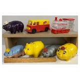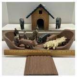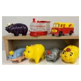 Cast Iron Farm/Dinner Bell with Bracket, Cast Iron Bank and Toys