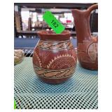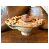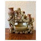 Carved Soapstone Teapot w Lid & Floral Decorat |