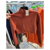 Rust Cropped Long Sleeve Ribbed Top, Size 8 |