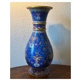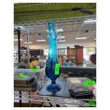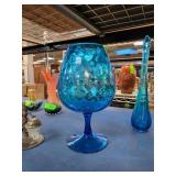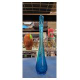 Tall Blue Glass Vase with Flared and Pulled Rim |