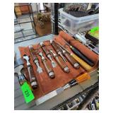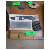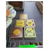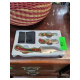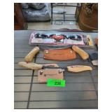 Five Mixed Kitchen Knives with Wood and Plastic Ha |