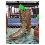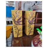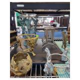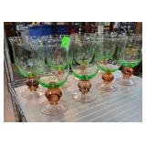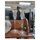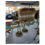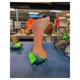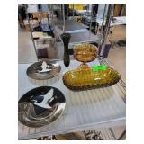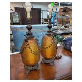 Mid Century Amber Glass Table Lamps with Ornate Ba |