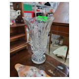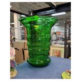 Large Green Glass Ribbed Vase with Wide Flared Rim |