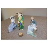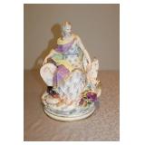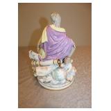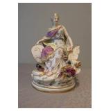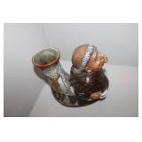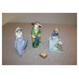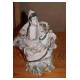 Antique Japanese Ceramic Samurai Figurine with Fan