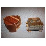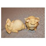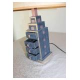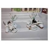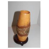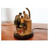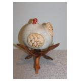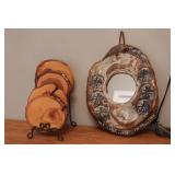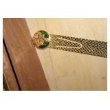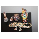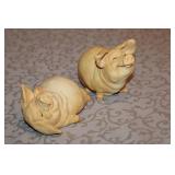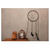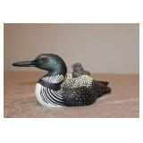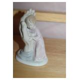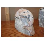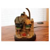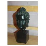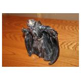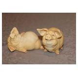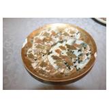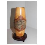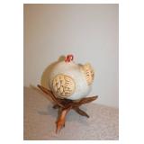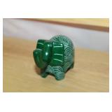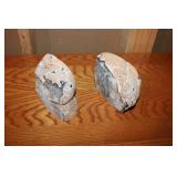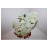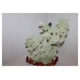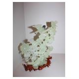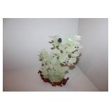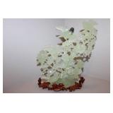 Jade-Style Carved Stone Sculpture with Birds on Wooden Base