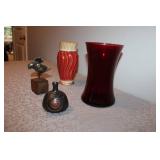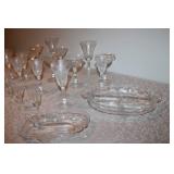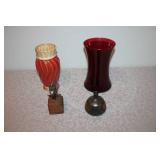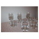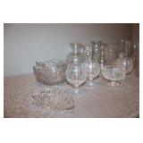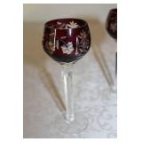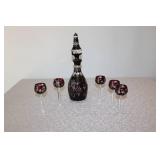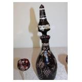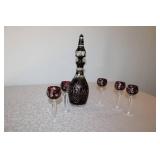 Bohemian Czech Ruby Cut to Clear Decanter with Glasses