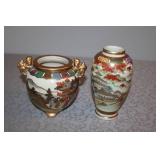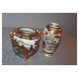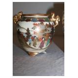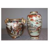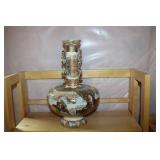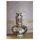 Antique Japanese Porcelain Vase with Ornate Gold Handles