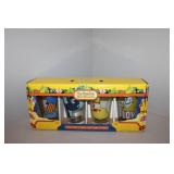 The Beatles Collectibles: Yellow Submarine Figures, Toy Lot, Pint Glasses & Tin Box