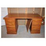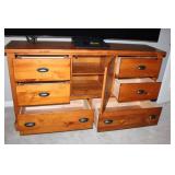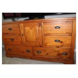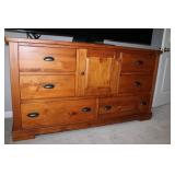Large Wooden Dresser with Six Drawers and Center Cabinet