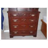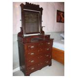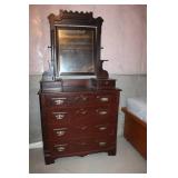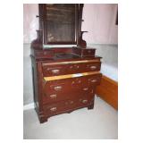 Antique Wooden Dresser with Mirror and 5 Drawers