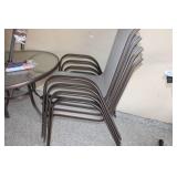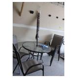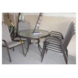 Outdoor Patio Set with Glass Table, 6 Chairs, and Patio Umbrella