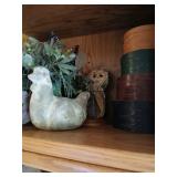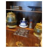 -ANTIQUES & COLLECTABLES- rare pre-Columbian recuay jaguar - God vessel w/authenticity * Maxfield Parrish original picture * antique pie safe - nice! * (3) grey enameled coffee pots * set of Hanson scales w/brass pan * several Longaberger baskets * primitive dovetail chest w/drawer at bottom * walnut shadow box * several hand-stitched quilts * Steiff Bear & others * pig bank * (2) old coffee grinders * 4' long primitive bench * wooden dough bowl * butter crock * sugar bucket * wooden wagon buggy seat * dough rollers * oak draw leaf table * goat cart * oil on canvas pictures * burled wood dresser box * oak wash stand w/towel bar * oak empire-style library table * 3-part heavily carved dressing screen * stuffed duck mount * heavy brass bailed pot * tobacco basket * reindeer rug from Alaska * tiger oak full size sleigh bed ornate * old baskets * comona * CROCKS: #2, #3, #4, #10 Red Wing crocks #6 blue design crock * large Planter’s Peanut jar * oak highchair w/caned seat & barley twist spindles * black memo. pull toy w/spinning ball * large collection of Madame Alexander dolls in boxes * primitive 2-door pine cupboard ornate * oak 2-glass door hutch w/bottom drawer * 1900's pine step-back kitchen cabinet 4-door w/drawers * Patricia Hearn painting * oil on canvas rabbit picture in ornate frame * signed Ducks Unlimited picture by Art Lemay * Singer treadle sewing machine * (2) enameled buckets * all wood school desk * ornate oil on canvas monkey picture * large brass platter * antique 4'wide x 2'deep 6-tier shoe rack from old mercantile store * Star brand shoes 3-part wooden chairs from old shoe store * The Brittany by Linda Picken art picture * ram figure 2' tall * 3' tall African figure * -HOUSEHOLD & FURNITURE- Drexel heritage gold couch * 10x12 rug handmade in India * metal blanket chest w/claw feet * tile-top wrought iron entryway table * Samsung 55" tv w/stand * Flex Steel tan couch * monkey & animal lamps * Samsung & Panasonic dvd players * 7' tall metal baker’s rack * leather office chair * gold queen bedspread * small oak cd cabinet * Klipsch speakers * tall metal decorative vases * rabbit pictures * wicker blanket chest * new steamer * hall runner rug & others * walnut 4 poster carved queen bed & 2-pc matching armoire by Magnussen Furniture - very nice! * wool 12x14 area rug made in India * animal wildlife pictures * (2) metal urns * Denon receiver * brass bakers rack * 2-pc walnut armoire * (2) stick lamps * ornate rounded top ottoman * child’s Crayola table & chairs * wall pictures * Neato robot vacuum * burled wood tall mirror * blonde table w/metal frame * sewing machine in cabinet * -GLASSWARE- large collection of David Winters figures in boxes * Poland cheese dome * large collection of Cherished Teddy’s * Masons 1gal jar * flower design stems * canister set * (3) tall ornate green vases * large ginger jar * several Dept. 56 lighted houses in boxes * oil & vinegar set * blue moon & stars compote * Jan Hagara signed ornaments & figures * decorative vases * set of (3) colored casseroles * -MISC.- jewelry box * Health-O-Meter doctor scales * Christmas * 33 albums (some rock & roll) * True Soft system treadmill * material * African mask * wooden bird cage * turn table *