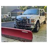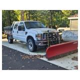 2008 White Ford F-250 XLT Crew Cab Truck 5.4L, Custom Alum Bed & Tarp, Western Snowplow, 208,089 miles, VIN: 1FTSW21588ED02597