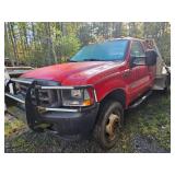 Trucks, Trailers, Skid Steers & Misc: 2003 Red Ford F-550 XL Super Duty Powerstroke V8 Turbo Diesel Truck with Custom Built Alum Flat Bed, 137,552 miles, VIN: 1FDAX57P63ED34696