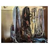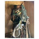 Round Pen; 2 Wood Horse Sleighs; 7 Western Saddles Inc. 1 Show Saddle; Saddle Racks; Driving Harness; Misc. Bridles, Halters & Misc. Tack