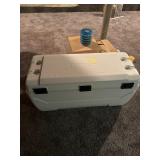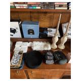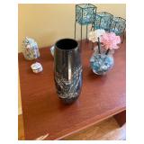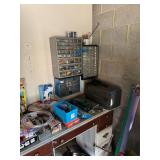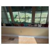 Contents of home includes futon, office art, lamps, home decor, games, tools, freezer, Asian screen, small appliances, office chairs, rugs, plants, grill outdoor furniture, garden tools, Vintage enamel kitchen table, globe, heavy bag, and more!! |