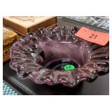 Nybro Sweden Fluted Vase with Scalloped Rim |