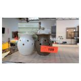 Santa Claus Ceramic Cookie Jar and Metal Candle Ho |