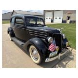 1936 Ford 2 Door Sedan: VIN:182721556, shows 14,919 miles, flathead V8 engine, 3 speed, runs