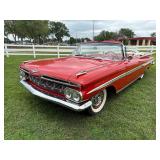 1959 Chevy Impala 2 Door Convertible: f59k-120096, shows 3093 miles, 348 engine, 4 barrel, power steering, white soft top, 2 speed automatic, bonded title, runs