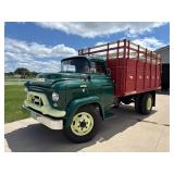 1954 Ford C600 Truck: VIN: C60Z4116012, shows 14,670 miles, V 8 engine, 4 speed transmission with 2 speed axle(2 speed axle is not hooked up), no box, turquoise in color, partial restoration, not running, project truck, this truck was just professionally repainted/restored by a body shop in Rock Valley, IA(Over $39,000.00 was spent on this truck in Aug. of 2025) CLICK HERE FOR INVOICE