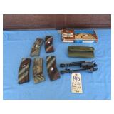 Ammunition/Misc: 9mm Luger (1,750 rnds); .223 Rem, .45 ACP, .30-06, 9mm Largo (1,175 rnds.); 9mm Makarov (1,600 rnds.); .380 ACP (1,000+ rnds); Knives and bayonets; large Winchester Fishing Tackle advertising sign.