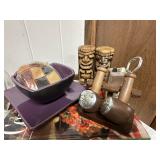 - MCM Black Cat Magnetic Salt & Pepper Shakers, Japan Wood Leather Tail Ears