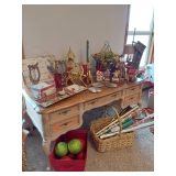 VINTAGE SECRETARY, COZY CHAIR AND A HALF, PAIR OF THOMASVILLE TALL BACK FABRIC CHAIRS FROM THE BOGART COLLECTION, LARGE DECORATIVE PAINTED CURIO CABINET, 2 MATCHING ROUND LEATHERTOP SIDE TABLES, ARTWORK, FITZ & FLOYD ROOSTERS, LAMPS, ANTIQUE LAMP TABLE, POTTERY, M.A. HADLEY DINNERWARE (122 PCS), PRIVACY SCREEN, BAR STOOLS, GARDENING POTS, PORTABLE AIR COMPRESSOR, 2 METAL TEA CARTS, GRILL, LARGE RUBBERMAID WHEELBARROW, FENCING, HANGING METAL PLANTERS, LARGE METAL CHANDELIER, SADDLES, TOOLS, LADDER, REBOUNDER, FOLDING CHAIRS, LOTS OF DECORATIVE ITEMS, NAME BRAND MENS CLOTHING XL, NAME BRAND WOMEN'S CLOTHING L-XXL, PURSES, SWEATERS, BOOTS, LG FRONT LOAD WASHER/DRYER, BASSETT DRESSER WITH WICKER FRONT DRAWERS, MARBLE TOP CHEST, BRASS LAMPS, LUGGAGE, BELTS, COATS, JACKETS, NESTING TABLES, BOMBAY CHEST OF DRAWERS, MANTLE CLOCKS, SIDE CHAIRS, MASSAGE TABLE, CHRISTMAS FLORAL PICKS, WICHITA TRUNK COMPANY HUMPBACK TRUNK, BOOKS, ORNATE ANTIQUE WOOD CHAIR, END TABLE/COFFEE TABLE, CHRISTMAS DECOR, ROSEVILLE AND MORE TO BE UNPACKED. FOLLOW US ON FACEBOOK FOR PRE-SALES, MORE PICTURES AND UPDATES. |