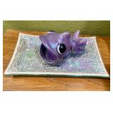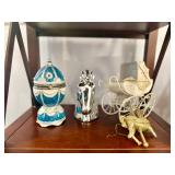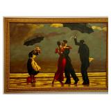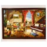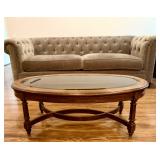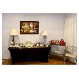 Furniture/Home Décor · Curtis Jere Metal Wall Sculpture “Café Paris” · Chagall Print · Grey Velvet Tufted Sofa · Beautiful Corner Display Cabibet · Accent Chairs (Rocking and Arm) · Glass Coffee Table · Mahogany Shelves · MCM Bar Cart & Chair · Dining Room Table (6 Chair) · 4 Chair Glass Top Patio Set · Rattan Chair w/Cane Seat · Vtg Small Roll Top Desk · Magazine Rack