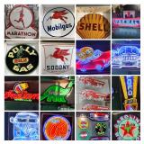 Huge Sign Auction! Neon & Porcelain Steel for your Man Cave, Garage or Restaurant.