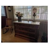 Personal Property starts at 10am- Antiques & Furniture: Large Copper Kettle; Mother Hubbard Hoosier Cabinet; Early American Oak Step-Back Cupboard; Eastlake-Style Hutch; Primitive Jelly Cabinets; Antique Solid Wood Secretary Desk; Antique Dry Sink; Victorian Marble Top Dresser; Tall French Pine Morbier Grandfather Clock; Oak Pedestal Dining Table w/ (6) Chairs & (2) Leaves; Small Kitchen Table w/(4) Chairs; Antique Pine Washstand; Antique Library Table; Antique Victorian Wardrobe; Antique Highboy Dresser (tigerwood?); Rattan Rocking Chair; Keyhole Desk; Wall Mounted Glass Cabinet; American Empire Cherry (5) Drawer Dresser; Antique Wooden Commode; Queen Sleigh Bed; Iron Full Bed; Montgomery Ward Oak Wall Phone; Multiple Accent Chairs; (2) Sofas; Accent Tables; Long Oak Bench; Hope Chest; Small Chest; Wooden Highchair; Wooden Baby Cradle; Wooden Buggy Seat; Milk Can; Oak Highback Stool; Several Crocks; Large Crock (Cracked); Collection of Cats Meows; Multiple Oil Lamps; Choc-ola Crate; Vintage Tins & Jewell Dairy Items; Railroad Lantern; Vintage Prints (1880’s Auction Sale Bill; Freddies Crosstitch; Champagne Mercier Poster); 1990’s Hills Bromide Apothecary Stoneware Bowl & Pitcher; Foreign Coins; Star Wars & GI Joe Toys