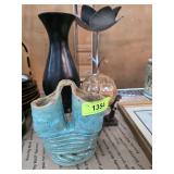 Handcrafted Blue Ceramic Vase with Double Opening |