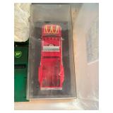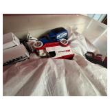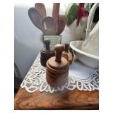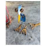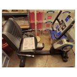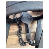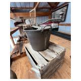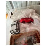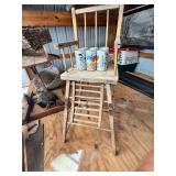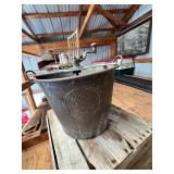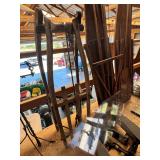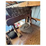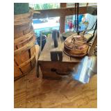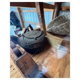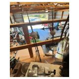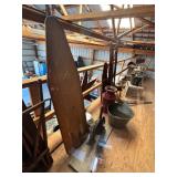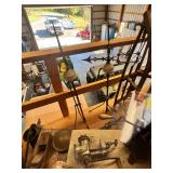 Esso porcelain sign, lightning rods, bear traps, popcorn maker, butter molds, coffee grinder, barrel, rocking chairs (need restrung), iron skillets, tea kettle & griddle, dial phone, wood plane, copper tea kettle, apple baskets, meat grinder, lard press, wood ironing boards, brass bucket, milk can, tobacco cutter, wood crates, bread maker, hand saws, wood high chair, corn cutter box, corn sheller, B&O railroad lantern (globe broke), sleigh bells, baskets, car & truck banks, WinRoss trucks, yard art, truck toolbox, Corelle/Pyrex "Crazy Daisy", cheese boxes, Jeanette Glass gold-band & Camellia glassware, Anchor Hocking “Wexford” glassware, elementary school readers & dictionaries, Blackstone grill cart, Flexispot #EN1W desk frame w/ electric height adjustment, Pepsi blue plastic bottle caddy, Pro-Form ZR3 recumbent exercise bike, glass chimneys, planters