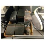 Computer parts, power adapters, miscellaneous cords, radio tubes, DVD players, Bose radio, and Sony under the cabinet radio and CD player, CDs and DVD collection 45 RPM oldies records, PlayStation II games, plus so much more.