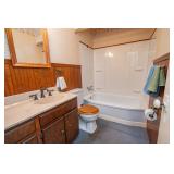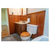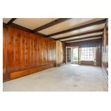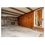 Built in 1935 with addition, this aluminum-sided ranch bungalow offers a functional floor plan providing plenty of natural light and charm throughout, complimented by paned windows, hardwood floors, wood walls and beam ceilings. The first floor features a cozy family room with knotty pine walls, faux wood beam ceiling and masonry fireplace, a spacious kitchen with breakfast bar and dining area, main bedroom with full bath, three additional bedrooms - one with covered porch, and a full bath nearby. The lower level has 696 square feet and includes a laundry area and plenty of storage. The home is equipped with natural gas heat, central air, natural gas water heater, and has a whole house Generac 11KW generator.