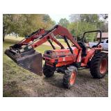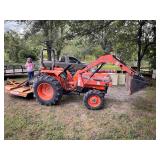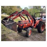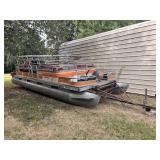 1997 GMC 1500 2x4 pickup 5.7 vortex V8, auto, tow package, 98k miles, matching topper (MUST SEE), 11’x20’ (Black Bear Barns) utility shed, 20’x35’ Metal carport/barn, 1987 Kubota L2850 w/Koyker 155 loader, 4x4, 1,271 original hrs. Kubota FS1270 52” roto tiller, Kubota 6’ hyd. push Blade, King Kutter 5’ 3pt. rotary mower, 14’ bumper hitch equipment trailer w/fold up ramps & title, King Kutter 3pt. 7’ blade, 3pt post hole digger w/12” auger, 3pt. tumble bug, 3pt. bale spike, HD 8’ chain drag, 3pt. Massey Ferguson 18” two bottom plow, Agra-fab 3pt broadcast spreader, Cub Cadet HDS 2185 46” cut lawn tractor 630hrs, Poulan rear tine tiller, 2 – 22’ & 24’ pontoon boats w/trailers (NO titles, future docks), 20’ x 24” aluminum treadplate walkway w/handrail, ATV 50gal. sprayer w/arms, alum. ATV ramps,