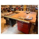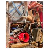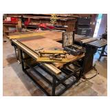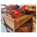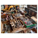Building Supplies, Tools & Misc. LOT 15+ (NEW old stock) Anderson thermal pane windows, Lot lumber, 20+ 1”x6”x16’ CCA, 3 – 2”x12”x16’, misc. 2”x6”, lg lot oak lumber (mostly 1”x various lengths), Lot 1”x2” slats, lot Oak trim, 30+ 4’x8’ sheets underlayment particle board, 20+ 4’x8’ sheets oak veneer (15 double sided), Belsaw model 1020 grinder on stand, Rockwell 36” lathe w/knives, 2 – alum. walk boards 16’ & 24’, new set attic stairs, lg lot bar clamps, Delta 50-85 dust collector, Craftsman 10” radial arm saw, Titan industrial 6250watt generator, lg lot corded hand tools, 150k All-Pro space heater, tile cutter, Commercial bench top drill press, Delta band saw, misc. organizers, old anvil (29”long x 10”tall), Sheet board model 114cutting machine, 5’x10’ HD cabinetry worktable, Folding portable tool stand, lot assorted metal wood racks various sizes, lot 8’ fluorescent lights, 2 – folding mechanical ladders, 20’ fiberglass ladder, lot misc. toolboxes, Kennedy tool cart w/wood top, 13’ aluminum jon boat (NT), 2 – yard carts, lot scrap iron, lot used T-post, lot wire cattle panels, Rubbermaid stock tank, fiberglass camper shell, lot Christmas décor, 7’ windmill, 3 – concrete deer, 3 – iron wheels, bird bath, lot garden décor, 2 – press metal lawn chairs, vintage fire hydrant, Steel implement wheels, lot misc. yard décor, lot PVC pipe & fittings, 5” bench vise, lot hand tools, Lot electrical extension cords, Craftsman bench grinder, Porter Cable router table & router, Sears sand blaster, Powermatic 6” planer, Kobalt air bubble, Powermatic commercial table saw, Craftsman commercial table saw, 2 - DeWalt power miter saws, Ramset, assorted saw blades New & Used, Klein hardware organizers, small air compressor, 2 – plastic barrels, 2 – ladder racks for truck/van, lot casters, Misc. fluids, 2 – western saddles (13” & 16”), lot equestrian tack, deer antler chandelier NIB, Fishing poles & tackle, lot canning jars, pet carriers, elect. heaters, DP air strider elliptical,