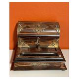 Antique desk stationary box with key Ink wells. Antique sheet music