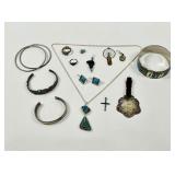 Navajo rings, Zuni signed pendant and fetish necklace.