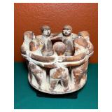 Bird bath, Talavera Sun wall art, pottery. Metal bench with birdcage shaped back!