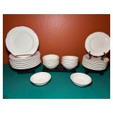 Corning ware, Martha Stewart, Tramontina, Farberware, cast iron skillets, Libbey Fiesta glassware. Ninja Ltd Edition Blender, Pyrex, Anchor Hocking, Kitchen Aid. Many nice kitchen items. Pfaltzgraff dinnerware,