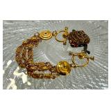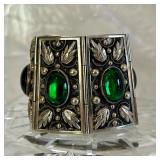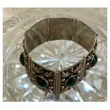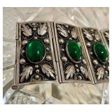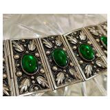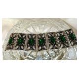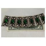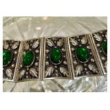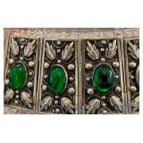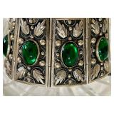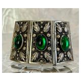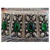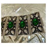 Fabulous Egyptian Revival Art Deco Design Panel Bracelet Stunning emerald green glass cabochons!