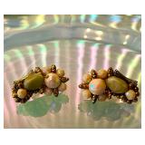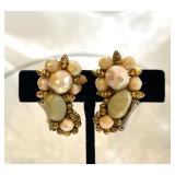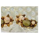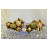 Hobe Milk Glass Iridescent Eararings Pink Opaque Glass Beads ~ Gorgeous!