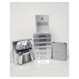 Tools and hardware, books and media, New Age, Halloween, Horror and Sci-Fi, decor and collectibles, horse and western, camping and outdoor, men's suits and apparel, and more. 1 Dewalt 12V Cordless Pivot Reciprocating Saw Model: DCS310 Variable Speed 3-Position Pivoting Reciprocating Saw. Tested for power. Includes some blades. 2 Ryobi One+ Cordless 18V Drills and Flashlight - 1/4" impact driver PCL235 - 3/8" drill / driver 209DCN - LED flashlight PCL660 - 18V 2.0Ah battery P190 - Battery charger P118B Tools have been tested for power. 3 $139 Ryobi One+ 18V Oscillating Multi-Tool Model: PCL430 Cordless. Tested for power. Includes 18V 2.0Ah battery PBP003, charger PCG002 and some blades. Kit retails for about $139 at Home Depot. 4 New Imperial & Diablo Oscillating Tool Blades (3) 2-packs of Imperial Blades and Diablo oscillating multi-tool scraping blades. 7 Milwaukee 18V Cordless 1/2" Drill Driver + Bits Model: M18 2606-20 Tested for power. Includes some drill bits. 8 Milwaukee 12V Cordless Hex Screwdriver + Charger Model: M12 2401-20 Compact Driver Tested for power. Includes M12 battery charger 48-59-2401. 9 Bauer 20V Cordless Drain Cleaner (No Ship) Local pick-up only. Model: 191101C-B Automatic-Feed Drain Cleaning Drum Machine. Tested for power. Includes a 5.0Ah battery and battery charger. 10 Bauer 20V Cordless Random Orbital Palm Sander Model: 1817C-B Tested for power. Includes a 1.5Ah battery and some sanding discs. 11 Tektronix TX3 True RMS Digital Multimeter Tested for power. 12 Soldering Gun, Irons and Accessories - Weller 8200 soldering gun - Weller WL25A soldering iron - RadioShack 64-2803A soldering iron kit - RadioShack Helping Hands, Holder / Cleaner, Solder Assist Tool Set and Vacuum Desoldering Bulb - Solder 18 Greenlee Knockout Punch / Die Set - 2-1/2" to 4" 2-1/2" ; 3" ; 3-1/2" ; 4" 19 Greenlee Knockout Punch Set / Dies - 3" and 4" (2) 3" size and (2) 4" size. 20 Enerpac Knockout Punch / Die Set - 3/4" to 3-1/2" 3/4" ; 1" ; 1-1/2" ; 2" ; 2-1/2" ; (x2) 3-1/2" 21 Greenlee Hydraulic Hand Pump and Dies (No Ship) Local pick-up only. Greenlee 767 pump. Seals are mostly likely bad. Untested / unknown working condition. 22 Greenlee Knockout Punch Set / Dies 11/16" ; (x3) 3/4" ; (x3) 1" ; (x2) 1-1/4" 23 Greenlee Knockout Punch Set / Dies (x2) 1-3/16" ; 1-7/32" ; (x2) 1" ; 1-1/4" ; 2-25/32" ; 2-1/2" 26 Hydraulic Knockout Punch Hand Pumps (No Ship) Untested / unknown working condition. As is. Greenlee, Enerpac (x2) and a Ridgid cylinder. 27 Greenlee Connecting Bar Unit for Bender (No Ship) Local pick-up only. Connecting bar unit for Greenlee 881 series hydraulic conduit bender. SuperTech Supplies is selling the pair for $1,120. 28 Central Machinery 8" Portable Ventilator (No Ship) Local pick-up only. Model: 97762 Tested - works. 29 Black and Decker 6" Bench Grinder (No Ship) Local pick-up only. Model: 9403 4.0Ah 1/2" arbor 30 50' 12 Gauge Extension Cord 12AWG 50' length Lighted plug ends. 31 (4) 14 Gauge Extension Cords 14AWG Assorted lengths. 32 Craftsman Pneumatic Impact Wrenches & Ratchet - 1/2" impact wrench 875.199870 - 3/8" impact wrench (unknown model) - 3/8" ratchet wrench 875.191174 Air tools have been tested for power. 33 Central Pneumatic Earthquake 3/4" Impact Wrench Model: 68423 Tested for power. 34 (3) Pneumatic Air Die Grinder Tools - Astro - 47050 - 44716 The Astro and 47050 die grinders have been tested for power. 35 Pneumatic Impact Wrenches and Ratchets - Alltrade 1/2" drive heavy duty air wrench 1706-A-141 - Central Pneumatic Professional 3/8" air impact wrench 93296 - Alltrade Magnum Series 3/8" air ratchet wrench (unknown model) - Central Pneumatic 3/8" air ratchet wrench Air tools have been test... 37 NAPA Portable Air Tank (No Ship) Local pick-up only. Model: 821-1171 38 Nibco Brass Ball Valve MSS SP-110 The diameter of both ends is about 2.25" 39 Schick 24" Aluminum Pipe Wrench (No Ship) Local pick-up only. H.M. Schick Products Company San Francisco, California 40 (3) Ridgid Pipe Wrenches (No Ship) Local pick-up only. 14" ; 18" ; 24" sizes 41 (2) Reed R12 Pipe Threading Die Heads - 1/2" & 1" 1/2" and 1" NPT 42 Tubing Cutters, Pipe Wrap Tape, Wrenches - Superior Tool, AutoCut, Pittsburgh and unknown brands tubing cutters - Proselect 10 mil pipe wrap tape - Reed TW516 torque wrench for cast iron soil pipe - basin wrench 43 Safety Gear - Hard Hats, Vests, Ear Plugs,... - Pyramix and other hard hats - foam ear plugs - (2) Body Guard microporous coveralls - possibly size XL - (3) Zojo safety vests - free size - Milwaukee High Visibility Safety Vest 48-73-5022 - size large / XL - safety goggles and glasses 44 (3) Arrow Staplers + Staples Models: T50, T50PBN and JT27 Includes T50 and T50 equivalent staples. 47 Garage Utility Hooks and Hangers (No Ship) Local pick-up only. 48 Window & Door Weatherseal and Flex Seal (No Ship) Local pick-up only. Weatherseal / Weatherstrip, poly foam caulk saver, tubular vinyl gasket, Shrink and Seal window kits, Flex Seal liquid (feels at least 1/2 full), Flex Seal tape and a screen installation tool. 49 Starter Shingle Roll and Flashing Tape - Owens Corning Starter Shingle Roll - 7.2" x 33'4" - GCP Vycor Plus - 6" x unknown length flashing tape 50 Coated Exterior Wood Screws Deckmate, GuardDog and Screw Products AXIS. 52 3" to 3-1/2" Collated Framing Nails - The wrapped bundle is 3" - The plastic Grip Rite bin is 3-1/4" - 2 strips of 3-1/2" 54 Senco Heavy Wire Galvanized Staples N17BAB 16 Gauge 7/16" crown x 1-1/2" leg 55 Senco Narrow Crown Construction Staples L11BRB 18 Gauge 1/4" crown x 3/4" leg Has rust from sitting / storage. 56 Narrow Crown Staples (No Ship) Local pick-up only. 1/4" to 1-1/2" 1" size is a partial box. All of the others are full. 57 Senco Brad Nails 18 Gauge Medium Head (2) 1-1/4" and (1) 1-1/2" size boxes (they feel full). 58 Finish Nails and Pin Nails - 2 boxes of Porter Cable and Huttig-Grip 16 gauge, 2" finish nails - 3 packages of FastenStrong 23 gauge pin nails - 1/2" ; 3/4" ; 1" size 59 Assorted 18" Gau