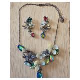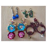 Multi-Colored Crystal and Gold-Toned Floral Earrin |